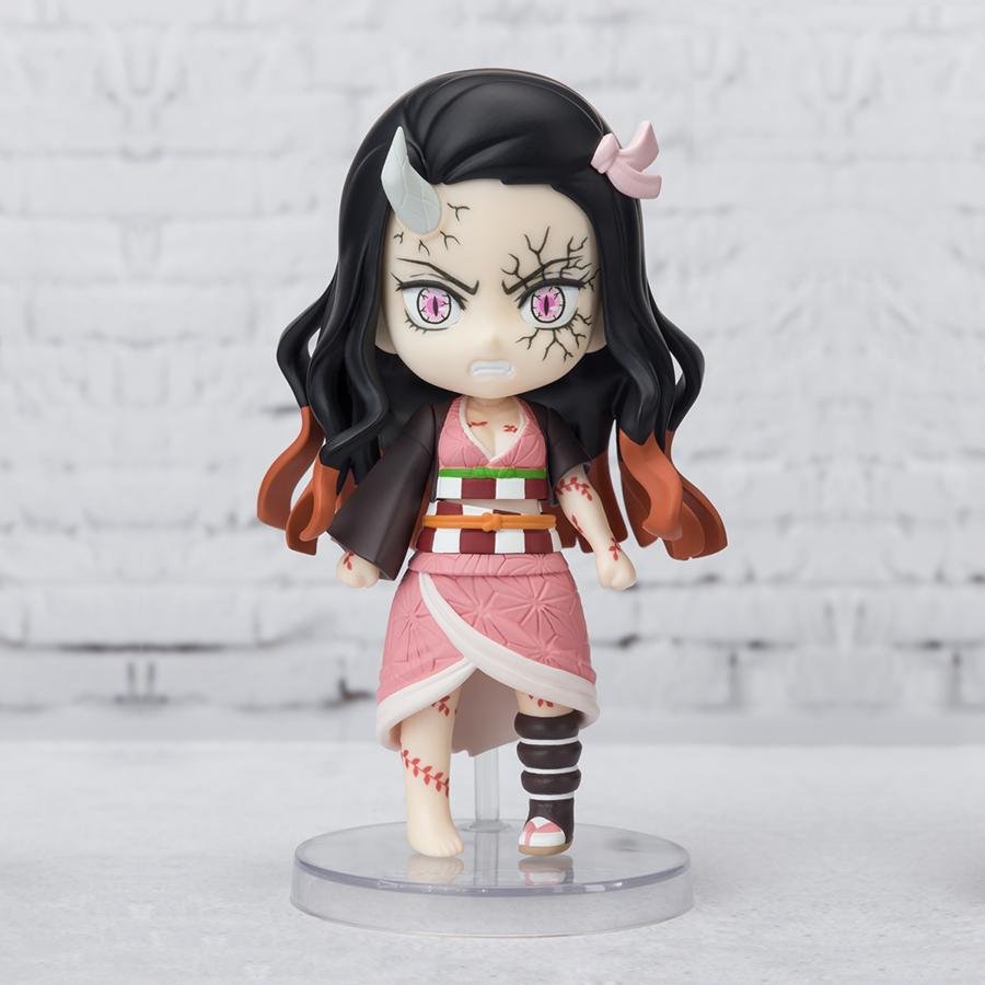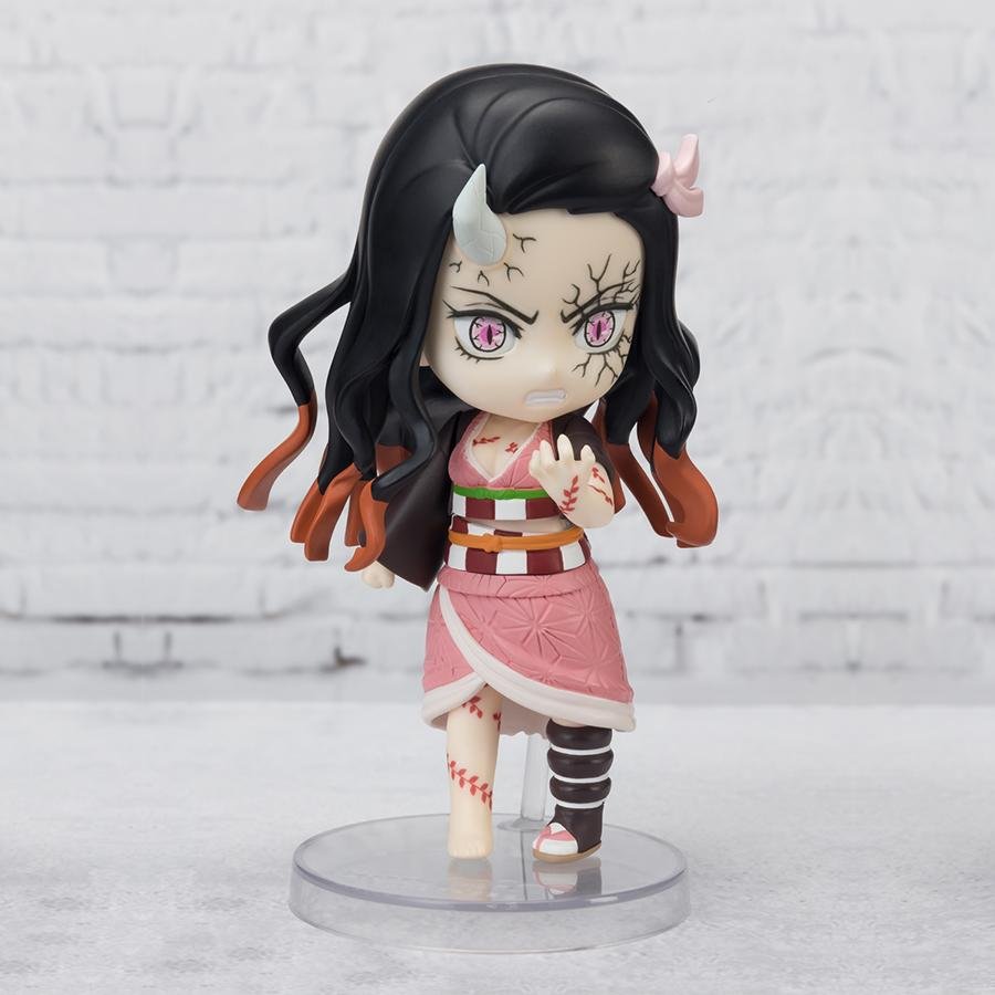 Mettez en scène Nezuko aux côtés d’autres figurines de la collection Figuarts Mini Demon Slayer pour recréer des moments clés de l’anime, ou placez-la sur une étagère dédiée aux personnages féminins forts et déterminés.