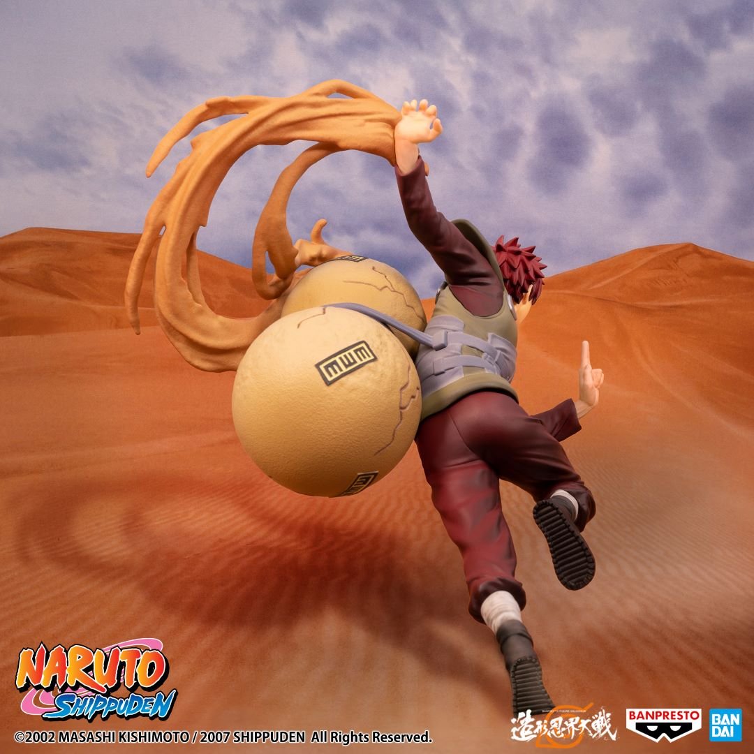 Dans l’arsenal des techniques les plus redoutables de Suna, la manipulation du sable par Gaara représente l’équilibre parfait entre destruction et protection, une dualité que cette figurine capture avec une précision remarquable.