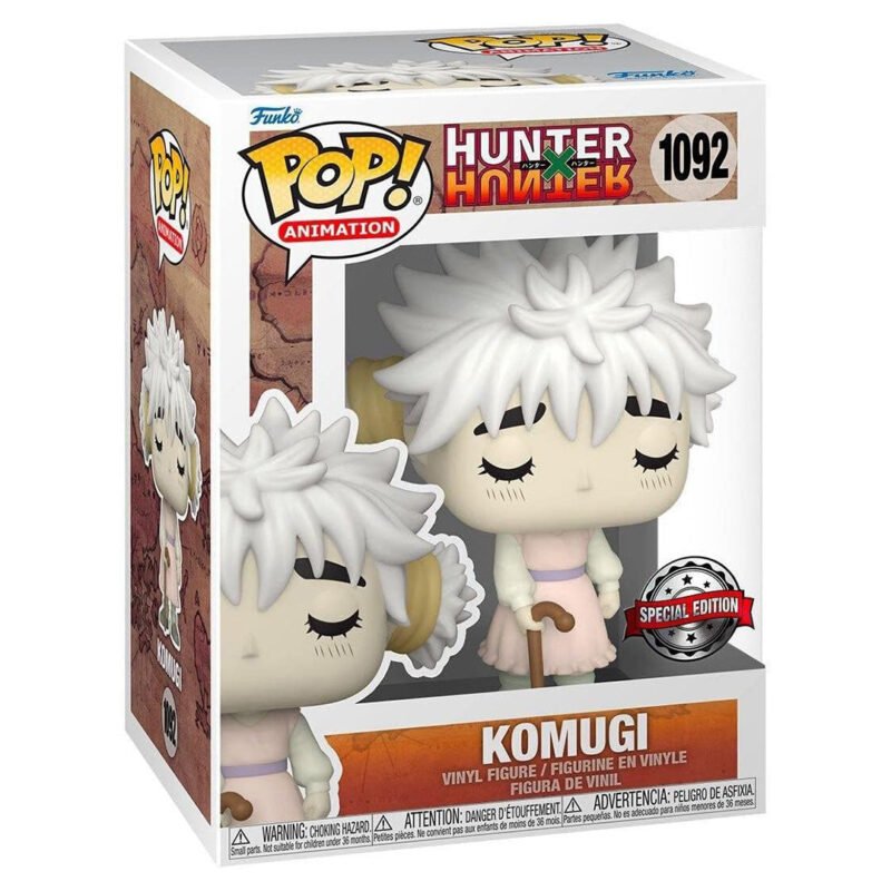La figurine Funko Pop! numéro 1092 présente Komugi dans sa tenue classique, avec ses cheveux blancs ébouriffés soigneusement attachés en couettes. Ses yeux bleus clairs sont fermés, ajoutant une touche de douceur à son expression. La canne en bois, minutieusement recréée, complète cette représentation fidèle et authentique, faisant de cette figurine un incontournable pour les fans.